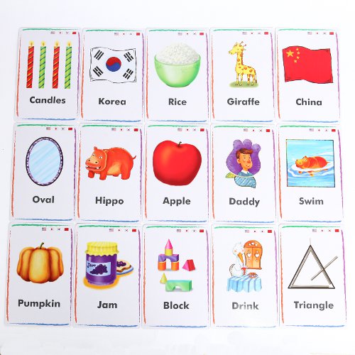 合計72枚の単語カードで構成されおり子供たちの語学駆使能力に合わせ学習できるように4ヵ国語(英語、日本語、韓国語、中国語)の単語(288単語)で印刷されていてネイティブな発音が自然に身につき単語のつづりも学習できます。