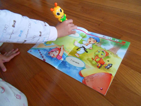 最先端機能搭載(USBメモリ、コンテンツ資料アップデート、MP3ダウンロード機能)の可愛いキャラクターTALK PENで教材の文字や絵をタッチするとTALK PENから4ヵ国語別に、正しいネイティブ発音が聞こえてきます。