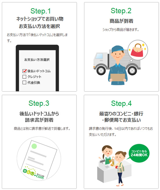 ●当サービスは(株)キャッチボールの運営する「後払い.com(ドットコム)」により提供されます。下記注意事項を確認、同意の上ご利用ください。(注1)
